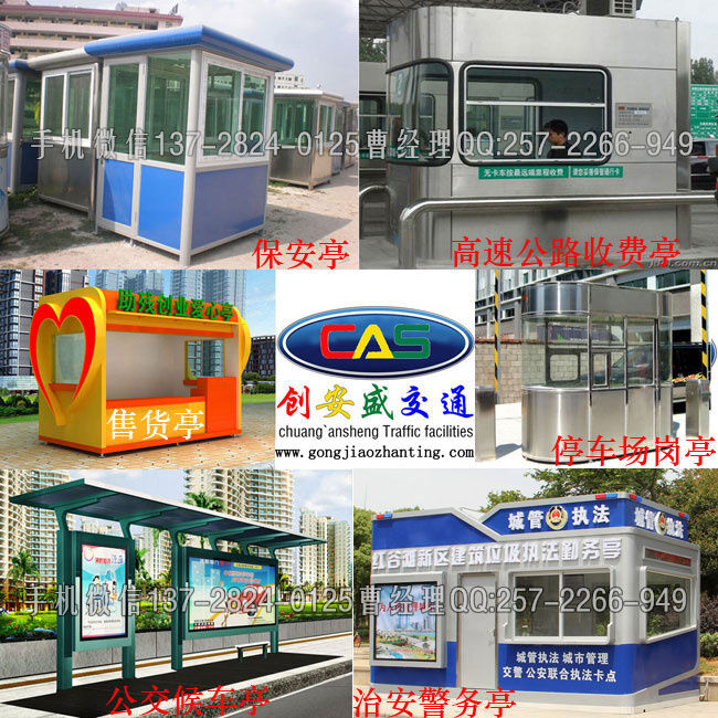 生產(chǎn)公交候車亭,崗?fù)?保安亭,高速公路收費亭,治安警務(wù)亭,售貨亭,手動欄桿機,報刊亭,公交站臺,交通安全勸導(dǎo)站,移動廁所,義工亭定做熱線137-2824-0125(微信同號)曹經(jīng)理QQ:257-2266-949急單請加撥132-6881-4669東莞創(chuàng)安盛交通溫馨提示:本產(chǎn)品屬于非標定做產(chǎn)品,價格依據(jù)圖紙核算,如需準確的報價或者預(yù)算,請撥打電話直接咨詢。感謝大家的關(guān)注與合作!期待為大家?guī)砀?、更?yōu)質(zhì)的產(chǎn)品、更完善的服務(wù)!如需產(chǎn)品樣式選型,請參考工廠網(wǎng)站。溫馨提示:由于本公司所有產(chǎn)品均由規(guī)格、配置、款式計算價格,所以一律無法在線成交,準確的價格請直接來電或者在線咨詢QQ。您要的“性價比高、優(yōu)質(zhì)、工期及時、全國年保、專業(yè)、周全、工藝精美”一直是我們的標準。注意:站崗?fù)榉菢硕ㄗ霎a(chǎn)品,在線無法訂購,需要與廠家溝通好“款式,規(guī)格、配置、運輸”等等方能下單。請勿直接拍。感謝關(guān)注,合作,謝謝!