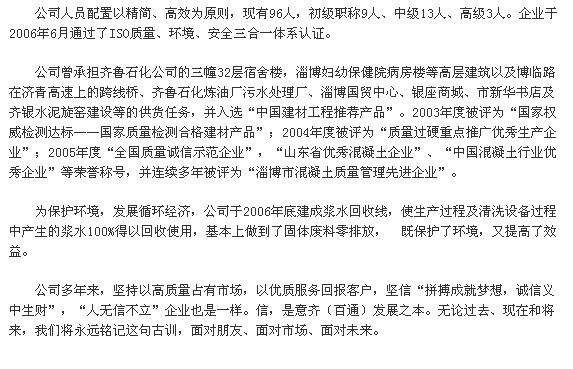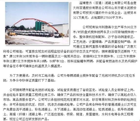 淄博意齊(百通)混凝土有限公司公司簡(jiǎn)介,關(guān)于淄博意齊(百通)混凝土有限公司