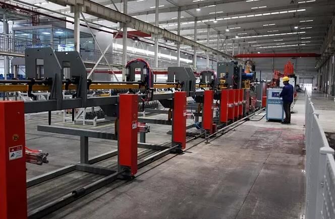 在項目建設(shè)初期,該公司引進(jìn)國內(nèi)先進(jìn)水平的PC生產(chǎn)流水線、全自動智能鋼筋加工線并開發(fā)智能混凝土攪拌站。PC流水線由自動清掃、噴油、劃線、邊模安裝、混凝土澆筑、趕平、預(yù)養(yǎng)護(hù)窯、抹光、養(yǎng)護(hù)、翻轉(zhuǎn)、沖洗等自動化設(shè)備組成,整個流水線各操作平臺由中央控室統(tǒng)一調(diào)度、控制,實現(xiàn)智能化、自動化生產(chǎn);鋼筋加工流水線是由全自動智能鋼筋桁架焊接機(jī)器人、全自動智能鋼筋彎箍機(jī)器人、全自動智能鋼筋柔性調(diào)直機(jī)器人、棒材鋼筋加工中心等鋼筋加工設(shè)備組成,可實現(xiàn)圖形輸入,數(shù)控加工;公司使用的混凝土攪拌站,是由徐工施維英有限公司設(shè)計、制造的符合公司生產(chǎn)實際需要的行業(yè)先進(jìn)裝備,該設(shè)備擁有“一站式雙主機(jī)、立體料倉”的特點,可生產(chǎn)多品種混凝土,尤其具有同時生產(chǎn)兩種型號混凝土的功能。