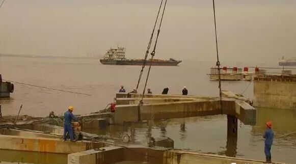 傾注法澆筑水下混凝土,可用于岸邊水深不起過(guò)1.5m的情況。新澆的混凝土堆用夯擊或振動(dòng)等方法擠入已澆的混凝土體中,使只有前沿的混凝土坡面與水直接接觸?;炷恋奶涠纫?~10cm為宜。采用此種方法應(yīng)盡量縮短澆筑時(shí)間,在澆筑工作未完成之前,先澆的混凝土不得凝固。
