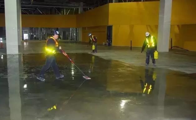 一旦混凝土表面的張合力被打開,混凝土經(jīng)過20到40多分鐘來吸收硬化劑。接著,可以對(duì)同一時(shí)間段進(jìn)行施工的整個(gè)區(qū)域做一個(gè)評(píng)估。如果大多數(shù)材料都已經(jīng)滲透到混凝土里,那就就將剩下的材料從濕潤區(qū)域勻到干燥區(qū)域。在起粘稠區(qū)域處添加點(diǎn)水,把地面刷均勻,然后讓它自然干。如果材料已經(jīng)全部滲透進(jìn)去,表面沒有任何殘留物,那就不需要再清洗地面了。