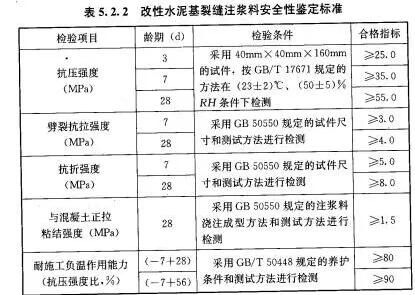 對(duì)于裂縫修補(bǔ)材料來(lái)說(shuō),其材料的安全性能指標(biāo),必須符合GB50728-2011《工程結(jié)構(gòu)加固材料安全性鑒定技術(shù)規(guī)范》的規(guī)定: