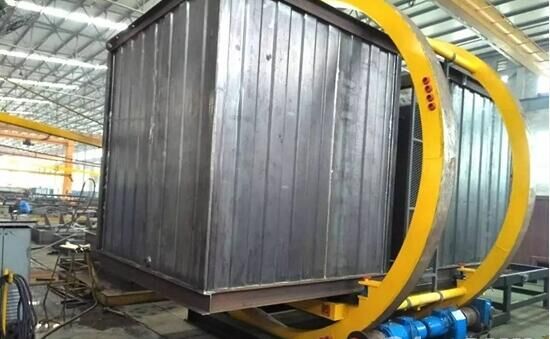 該工裝適用于HZS系列混凝土攪拌站所有水箱、外加劑箱、控制室生產(chǎn)過(guò)程中的翻轉(zhuǎn)焊接。工裝工件采用軌道輸送,四角螺旋定位,平穩(wěn)快速;可調(diào)節(jié)過(guò)渡軌道,可移動(dòng)踏板,方便快捷,安全可靠。