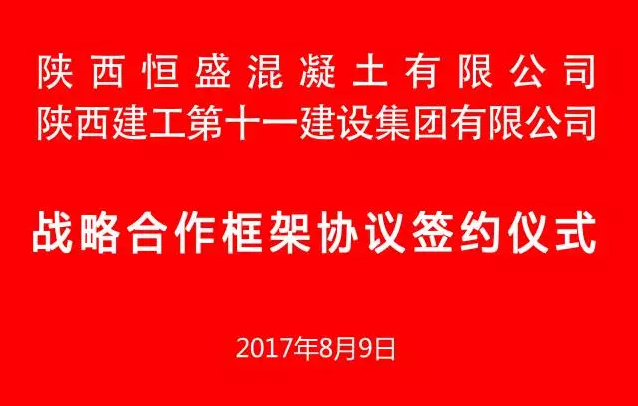 8月9日,陜西恒盛混凝土有限公司與陜西建工第十一建設(shè)集團(tuán)有限公司戰(zhàn)略合作框架協(xié)議簽約儀式在陜建十一建集團(tuán)西安總部隆重舉行。陜西恒盛集團(tuán)董事長王武鎖,陜西建工第十一建設(shè)集團(tuán)有限公司總經(jīng)理馮宏斌出席儀式代表雙方簽約。
