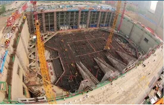 2013年中國(guó)尊項(xiàng)目建設(shè)啟動(dòng),嚴(yán)峻的考驗(yàn)也隨之而來。據(jù)介紹,“中國(guó)尊”項(xiàng)目的基坑深度38米,局部達(dá)到40米,是中國(guó)未見、全球罕見的超深民用建筑基坑,創(chuàng)中國(guó)超高層建筑基坑深度之最,施工方需要在100小時(shí)內(nèi)不間斷完成5.6萬立方米大體積底板混凝土澆筑工作。
