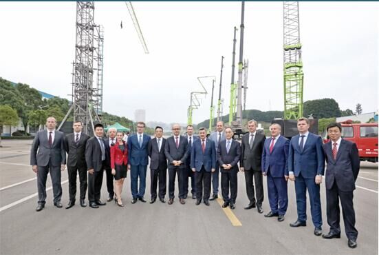 9月28日,由白俄羅斯莫吉廖夫州執(zhí)行委員會(huì)主席多馬涅夫斯基、白俄羅斯經(jīng)濟(jì)部部長(zhǎng)季諾夫斯基、白俄羅斯駐華大使魯?shù)陆M成的代表團(tuán)抵湘訪問(wèn)。當(dāng)天下午,代表團(tuán)一行來(lái)到中聯(lián)重科麓谷工業(yè)園進(jìn)行參觀,中聯(lián)重科董事長(zhǎng)詹純新熱情接待了代表團(tuán)。