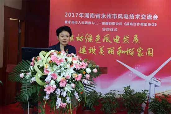 周福貴表示,風(fēng)電事業(yè)功在當(dāng)代、利在千秋,永州擁有豐富的風(fēng)能資源,三一重能將利用已有的技術(shù)資源優(yōu)勢,精心設(shè)計(jì),周密計(jì)劃,文明施工,綠色施工,把風(fēng)電裝備制造基地設(shè)在永州、建在永州、成長在永州。通過引進(jìn)和吸引全球先進(jìn)技術(shù),融合全球優(yōu)質(zhì)資源,專注于風(fēng)電主機(jī)開發(fā)與制造,力爭把三一重能打造為像工程機(jī)械領(lǐng)域中三一重工一樣的頂尖風(fēng)機(jī)制造商。
