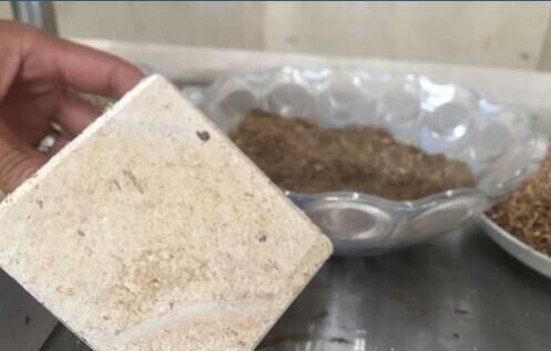 上生產出來的鋼鈣秸稈實心墻板已擺放得整整齊齊?!斑@些機器‘吃’進去的是秸稈,‘吐’出來的是墻板,正適合當作建筑外墻屋面材料。”該公司經理文華銀拿出了一塊墻板樣品,側切面能清晰地看到秸稈碎屑。盡管摸上去第一感覺像木頭,但用手使勁兒敲打卻能感受到足夠的硬度,“每平米墻板所含的秸稈能達到60%至80%。”
