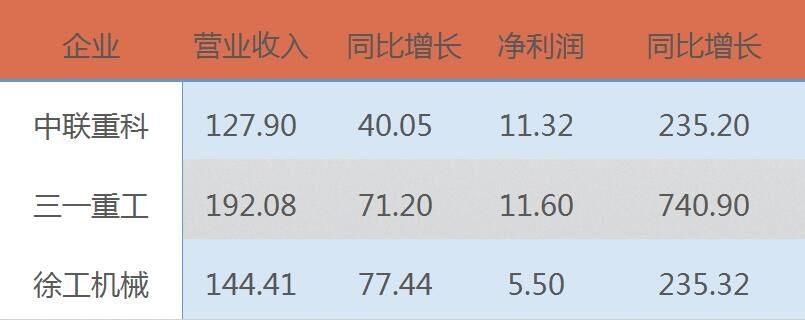 混凝土機(jī)械市場(chǎng)復(fù)蘇程度決定未來生產(chǎn)企業(yè)利潤(rùn)回復(fù)的彈性高度,混凝土機(jī)械的回暖,有利改善行業(yè)企業(yè)毛利率水平。中聯(lián)重科、三一重工、徐州股份三家上市公司上半年年報(bào)數(shù)據(jù)喜人。