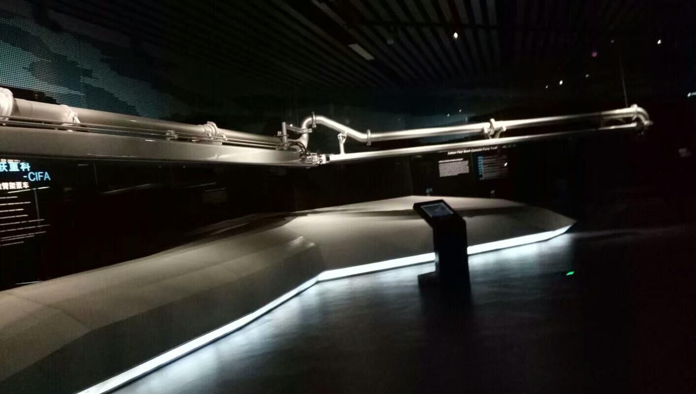 引導(dǎo)人員還特別向我們介紹了中聯(lián)的科技產(chǎn)品——碳釬維臂架,相比較鋼鐵材質(zhì)的臂架,同樣大小體積的臂架,碳纖維臂架只有傳統(tǒng)臂架五分之一的重量,完美的解決了臂架長(zhǎng)度問(wèn)題,這一產(chǎn)品的出世,展示了中聯(lián)在技術(shù)方面不斷的鉆研和追求。