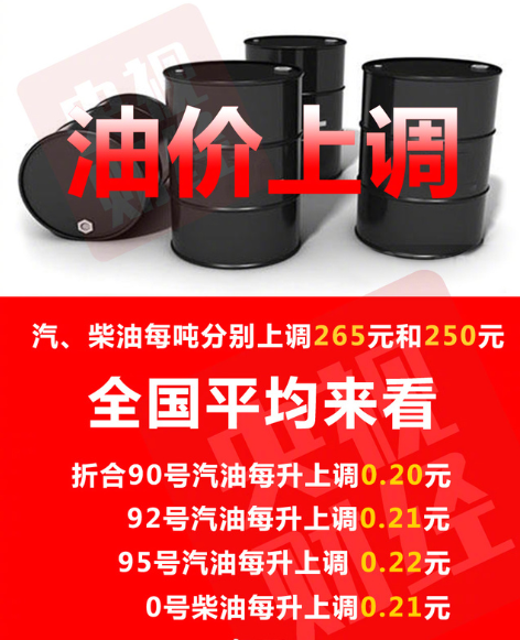 此次油價(jià)調(diào)整具體為:每噸汽油上調(diào)265元、柴油上調(diào)250元。