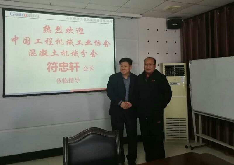 (左為:混凝土機(jī)械分會(huì)會(huì)長(zhǎng)符忠軒,右為山東精砼工程機(jī)械股份有限公司董事長(zhǎng)盛富春)