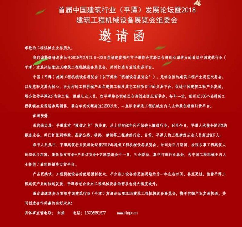 2018年2月21日-23日在福建省福州市平潭綜合實(shí)驗(yàn)區(qū)臺(tái)灣創(chuàng)業(yè)園舉辦的首屆中國(guó)建筑行業(yè)(平潭)發(fā)展論壇暨2018建筑工程機(jī)械設(shè)備展覽會(huì),共同打造專業(yè)性交易平臺(tái)。