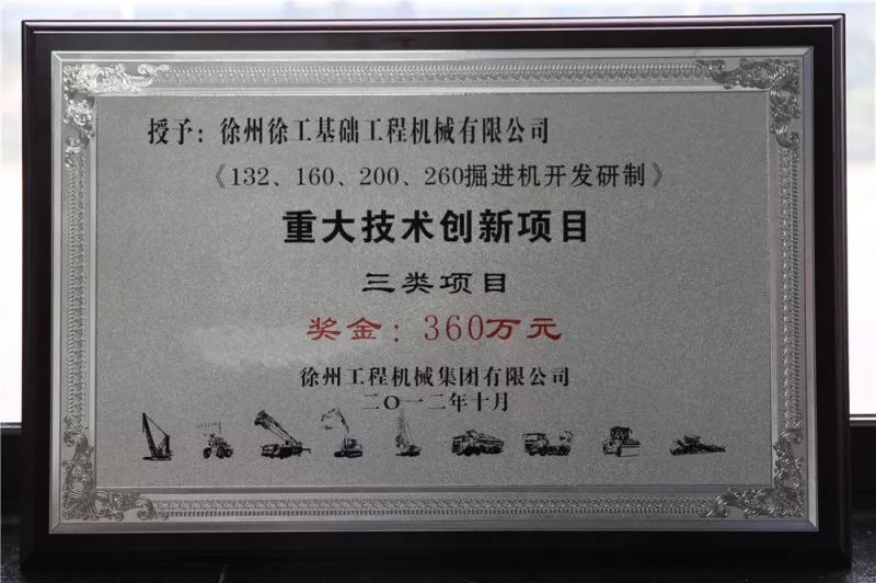 2011年,當(dāng)年9月,徐工基礎(chǔ)推出首臺具有自主知識產(chǎn)權(quán)的EBZ160掘進機,其成功研制填補了徐工在煤礦掘進機方面的空白,當(dāng)年順利通過煤安認證、實現(xiàn)銷售;2012年10月,EBZ135、160、200、260系列掘進機被授予徐工集團重大技術(shù)創(chuàng)新項目,獲得獎金360萬元。