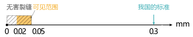 在正常使用荷載作用下,鋼筋混凝上結(jié)構一般是帶裂縫工作的,一般肉眼可見的裂縫范圍為0.02~0.05mm,裂縫寬度小于0.05mm 的屬無害裂縫,對防水、防腐蝕與承重的影響均可忽略不計。