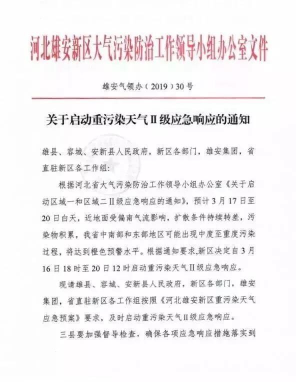 按照省大氣辦《關(guān)于啟動區(qū)域一和區(qū)域二Ⅱ級應(yīng)急響應(yīng)的通知》要求,根據(jù)近日氣象擴(kuò)散條件,市重污染天氣應(yīng)對指揮部決定自2019年3月16日18時至20日12時,全市啟動重污染天氣Ⅱ級應(yīng)急響應(yīng)?,F(xiàn)將有關(guān)事項(xiàng)通知如下: