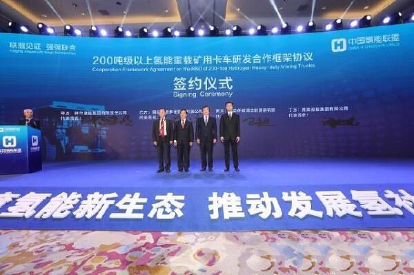 濰柴與國能集團合作開展的200噸級氫能礦卡項目簽約儀式