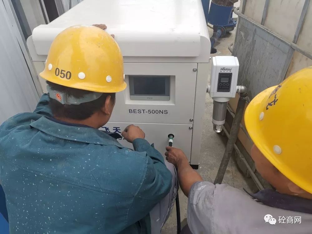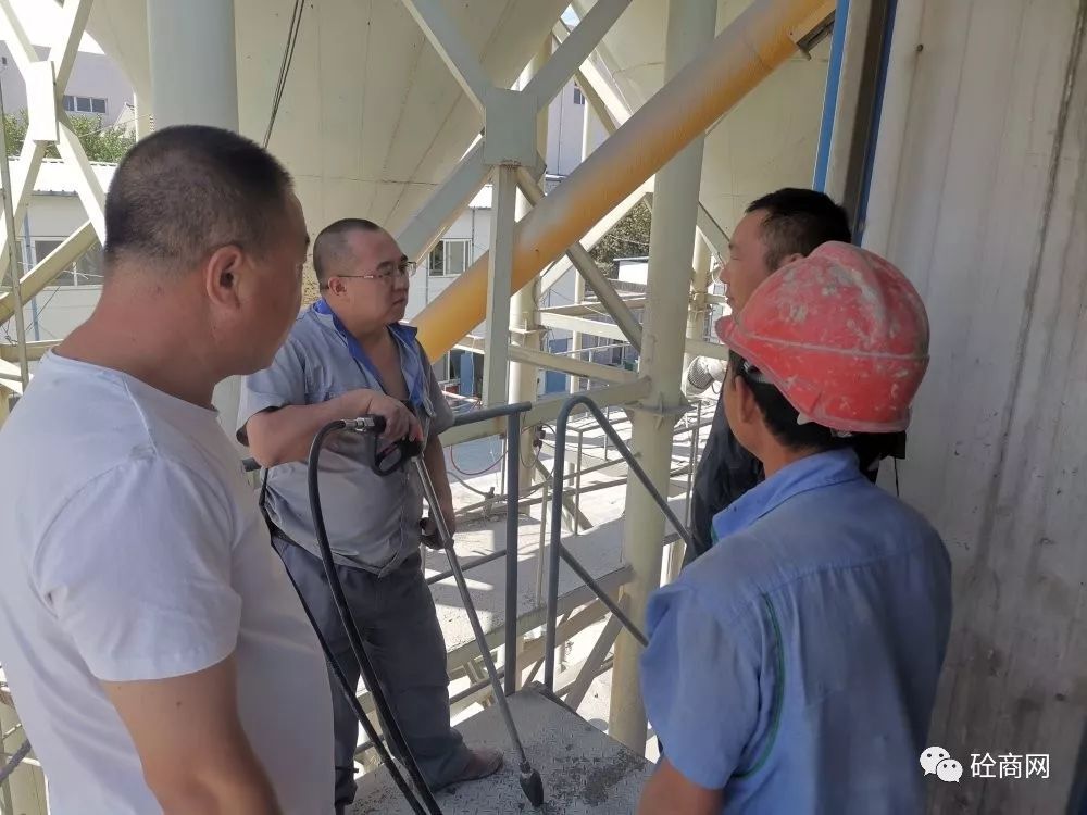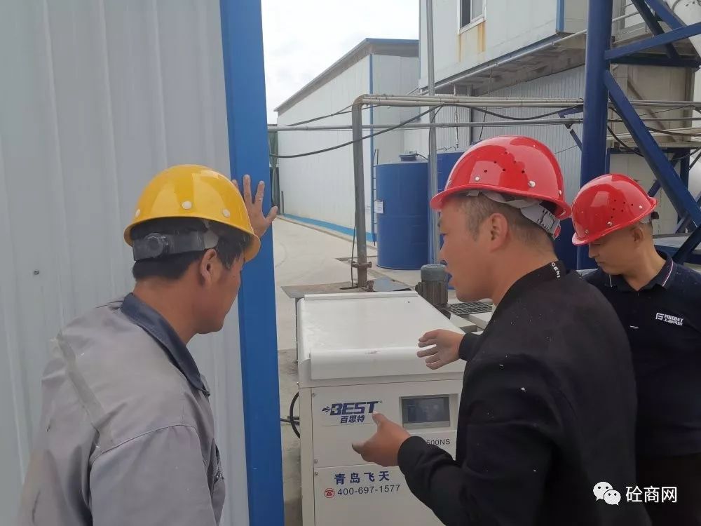 到了青島某攪拌站后,其攪拌站負(fù)責(zé)人攜站長親自到現(xiàn)場(chǎng)觀看試機(jī)效果。