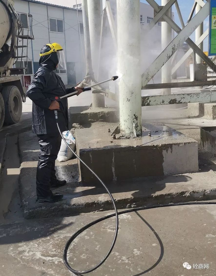 在楊技術(shù)員給站上工作人員進(jìn)行初步講解指導(dǎo)后,首先對(duì)兩年沒有清理過的水泥倉支腿下方累積的混凝土進(jìn)行了處理。那么,效果究竟怎么樣呢?具體視頻關(guān)注“砼商網(wǎng)”公眾號(hào),回復(fù)“高壓清洗機(jī)”即可獲得技術(shù)員正準(zhǔn)備打攪拌機(jī)主樓容易噴濺混凝土的地方時(shí)該攪拌站站長說道,這可得有兩年沒清理過的混凝土結(jié)塊,十幾公分厚呀!你們這高壓清洗機(jī)能打掉嗎?這是混凝土??!這么長時(shí)間了,還這么厚,打不下去怎么辦?正在小編心里打鼓的時(shí)候,楊技術(shù)員說道,沒問題,放心吧!