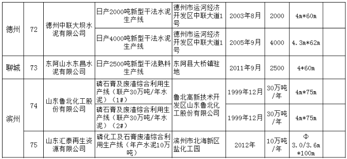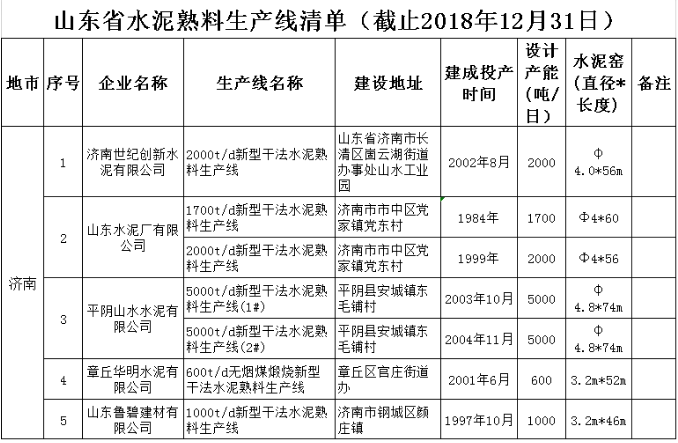 將截止2018年12月31日的山東省水泥熟料和平板玻璃生產(chǎn)線清單予以公示,共計(jì)75條水泥熟料生產(chǎn)線。
