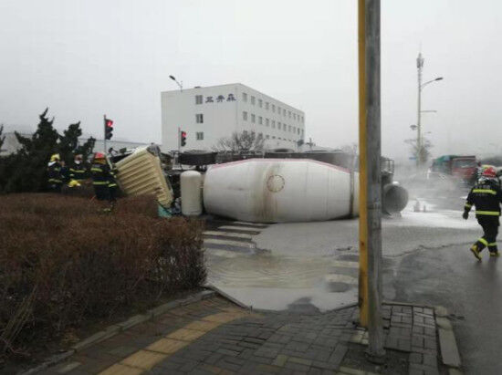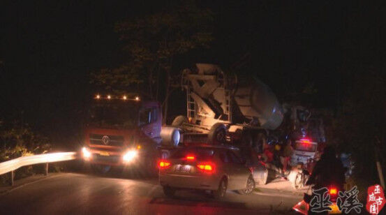 11月11日中午12時(shí)左右,在S102省道二灣附近,一輛大型混凝土攪拌罐車側(cè)翻,幸無人員傷亡。