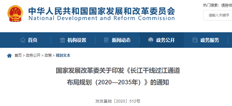??《長江干線過江通道布局規(guī)劃(2020—2035年)》(以下簡稱《規(guī)劃》)業(yè)經(jīng)國務(wù)院批準,現(xiàn)印發(fā)給你們,請按照執(zhí)行,并就有關(guān)事項通知如下: