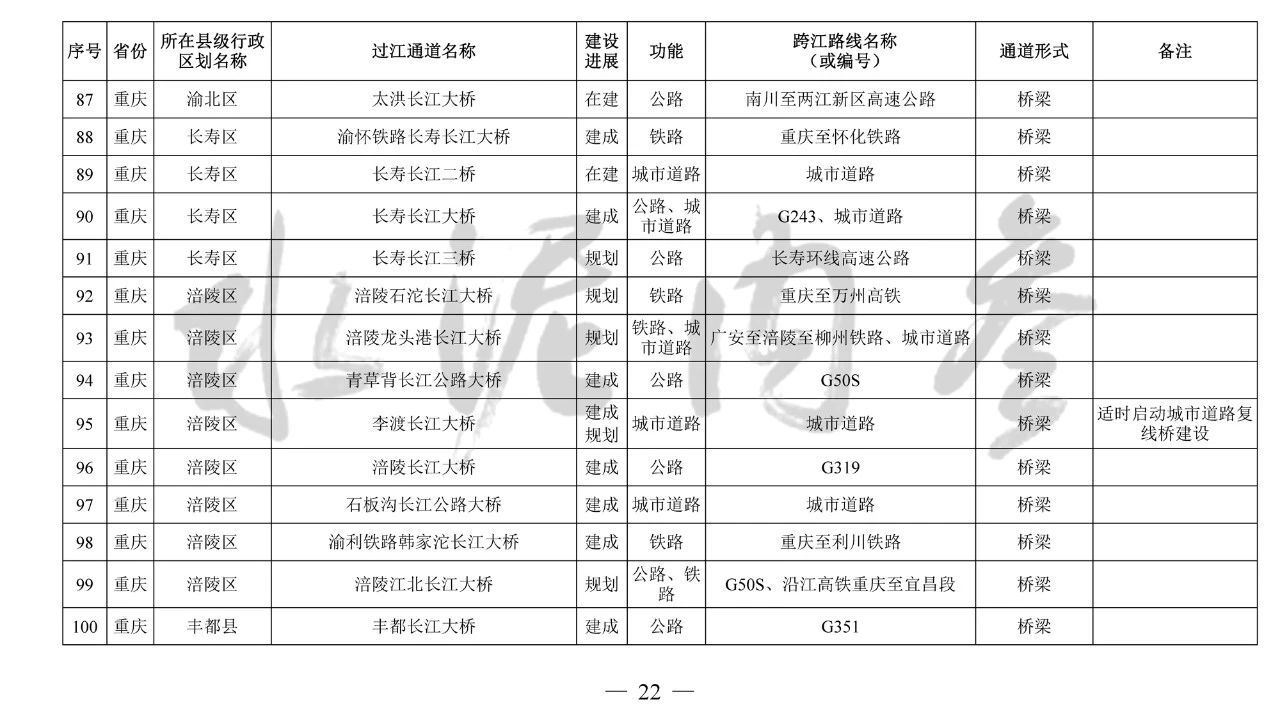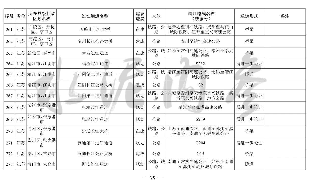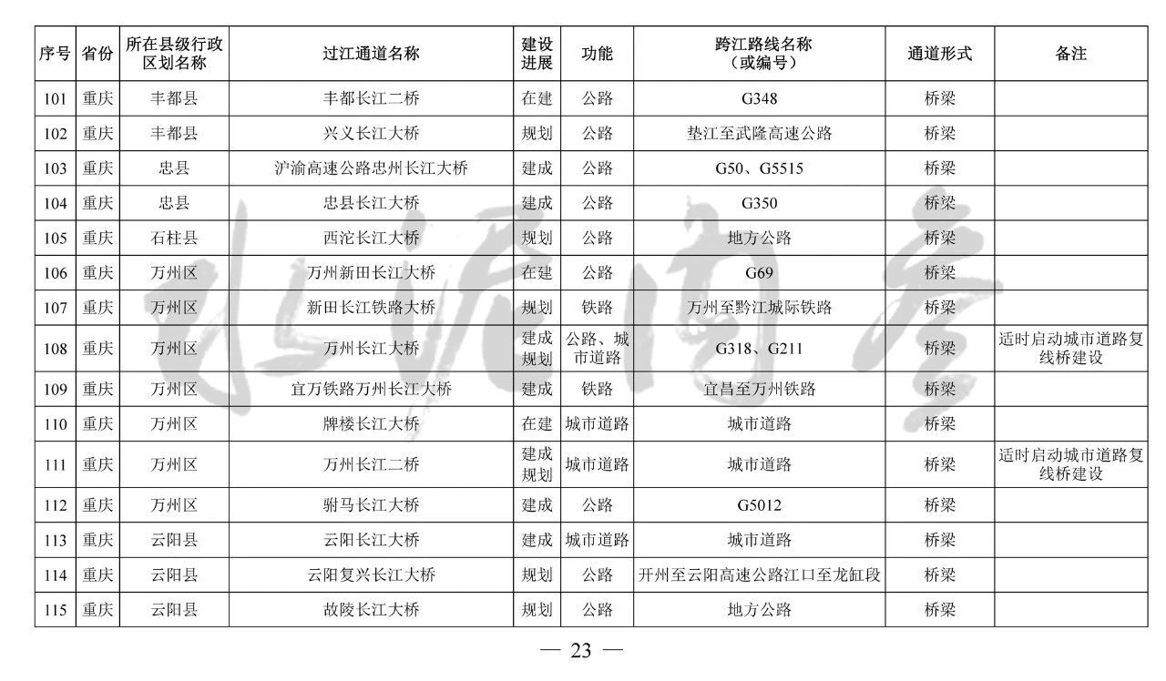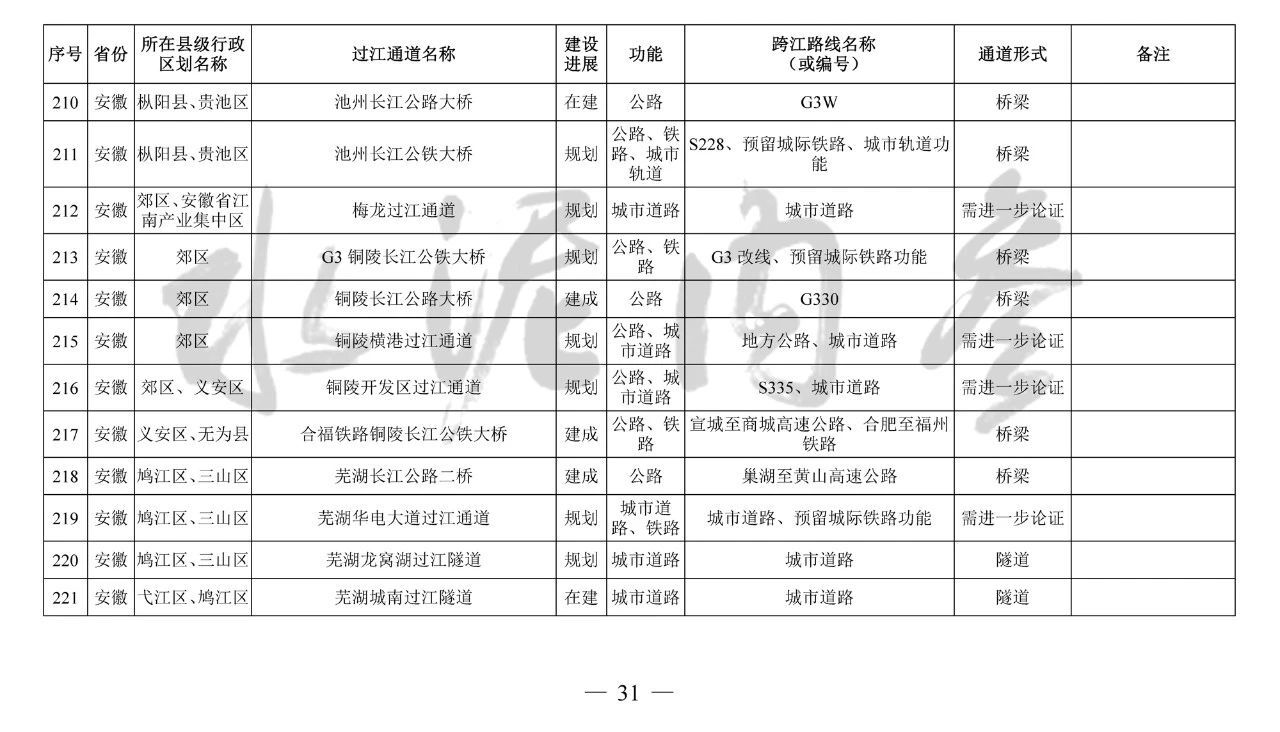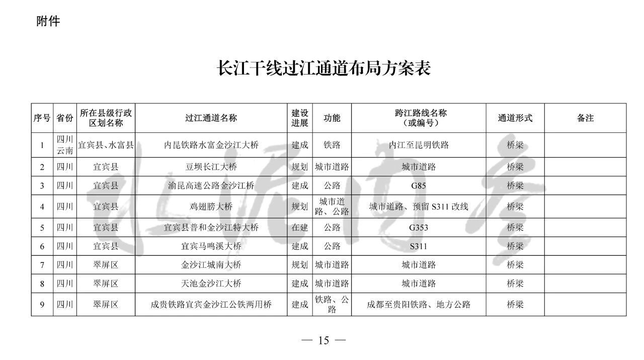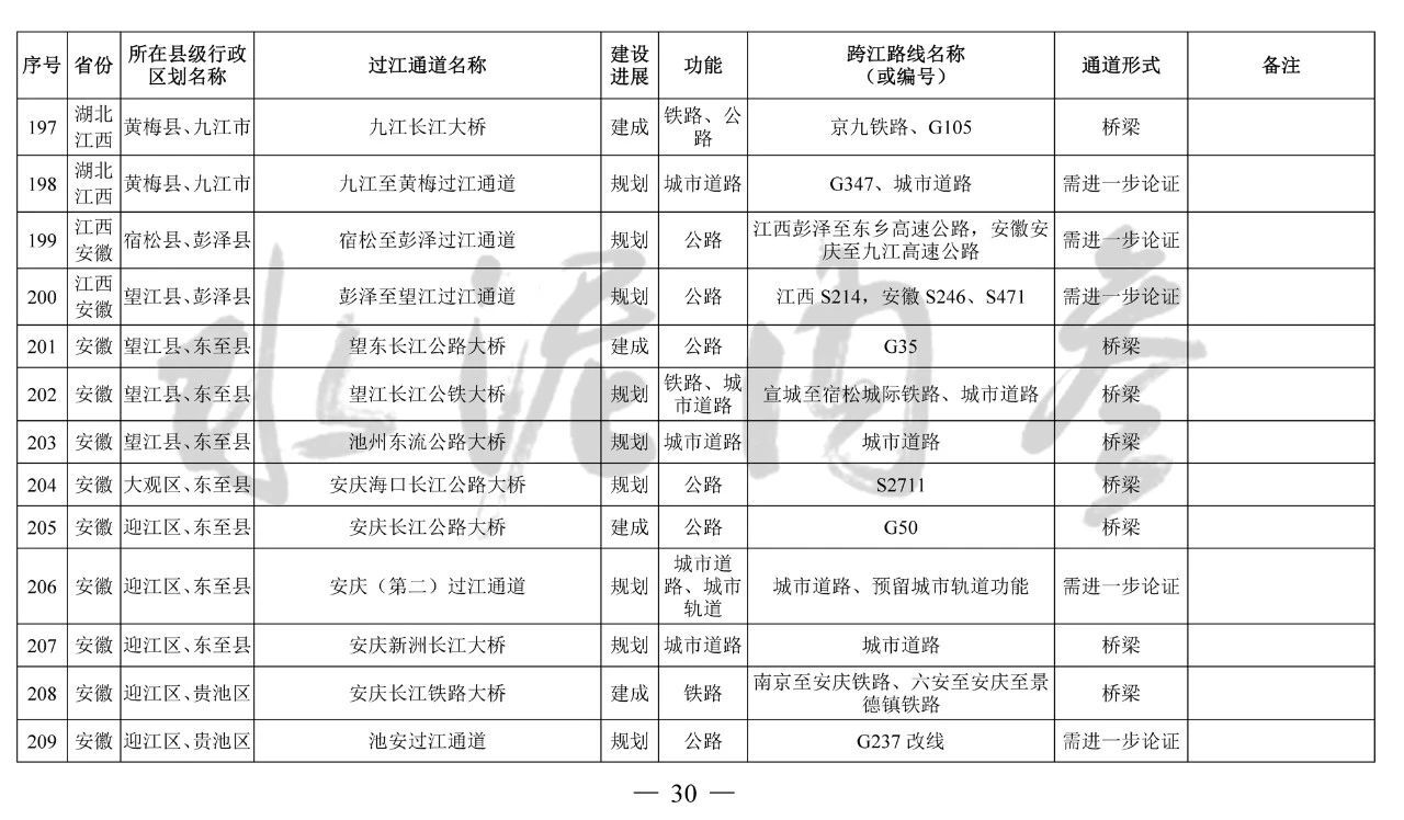 ??五、在規(guī)劃實施過程中,根據(jù)區(qū)域經(jīng)濟社會發(fā)展、優(yōu)化利用通道資源等要求,針對部分過江通道功能的適當(dāng)調(diào)整,報送我委會同國務(wù)院有關(guān)部門予以認定。