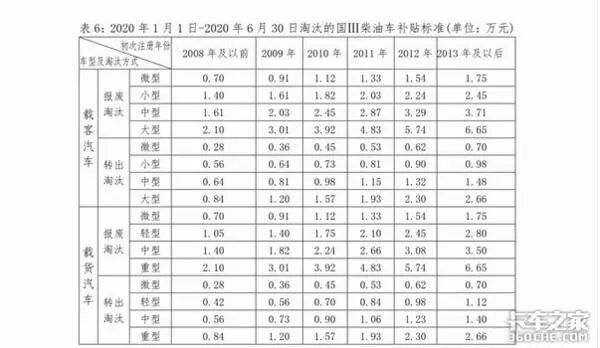 浙江省麗水市的國(guó)三淘汰補(bǔ)貼分為兩個(gè)階段,以7月1日為分界線,2020年6月30日之前淘汰國(guó)三柴油貨車最高可拿到3.7萬元補(bǔ)貼;7月1日至11月30日,最高可享受補(bǔ)貼3萬元。