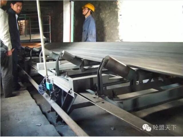 基礎(chǔ)不平、平托輥粘料、槽形輥?zhàn)笥也黄胶庖约爸?、被?dòng)輥調(diào)節(jié)不平衡部會(huì)造成輸送帶跑偏。若輸送帶在空載與加載的情況下都向同一側(cè)跑偏,說(shuō)明輸送帶兩側(cè)的松緊度不一樣或機(jī)架不平。此時(shí),應(yīng)首先將機(jī)架基礎(chǔ)調(diào)平,清除平托輥上的粘料,調(diào)整張緊機(jī)構(gòu)絲桿或配重。如果輸送帶左右跑偏無(wú)固定方向,則說(shuō)明輸送帶松弛,應(yīng)調(diào)整張緊機(jī)構(gòu)。若輸送帶在輸送機(jī)的中部跑偏,可通過(guò)調(diào)整托輥組的位置進(jìn)行糾正,