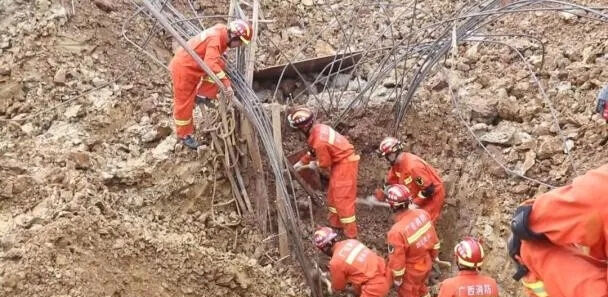 救援正在爭分奪秒進(jìn)行時,13點(diǎn)56分,基坑突然發(fā)生二次塌方,原有救援通道被封堵,人員被埋位置更深,現(xiàn)場情況變得更加嚴(yán)峻復(fù)雜,救援難度進(jìn)一步增大。百色市應(yīng)急管理局、公安局、百色市紅十字會搜救救援隊(duì)、供電局等社會聯(lián)動單位相繼到達(dá)現(xiàn)場,并成立現(xiàn)場指揮部。