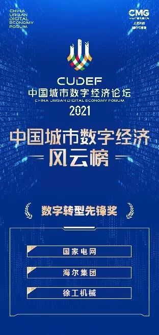 論壇上,《中國城市數(shù)字經(jīng)濟(jì)風(fēng)云榜》榮耀發(fā)布。榜單包括“城市數(shù)字經(jīng)濟(jì)競(jìng)爭(zhēng)力綜合排名”,同時(shí)多項(xiàng)重磅獎(jiǎng)項(xiàng)發(fā)布,“數(shù)字賦能先鋒獎(jiǎng)”“數(shù)字轉(zhuǎn)型先鋒獎(jiǎng)”“數(shù)字應(yīng)用方案獎(jiǎng)”。徐工機(jī)械與國家電網(wǎng)、海爾集團(tuán)同時(shí)榮獲“數(shù)字轉(zhuǎn)型先鋒獎(jiǎng)”,成為唯一入選的工程機(jī)械制造企業(yè)。