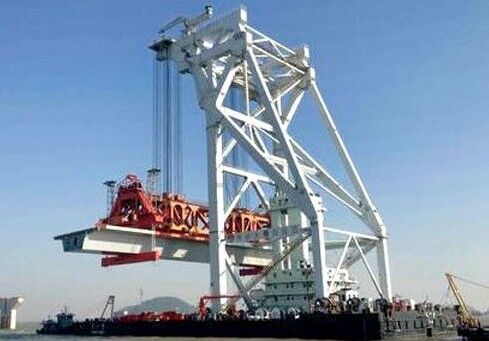 在大橋建設現場,記者看到,遼闊的海面,海天輝映的地方,三一紅顯得格外耀眼,不遠處的三一設備正“辛勤工作”。