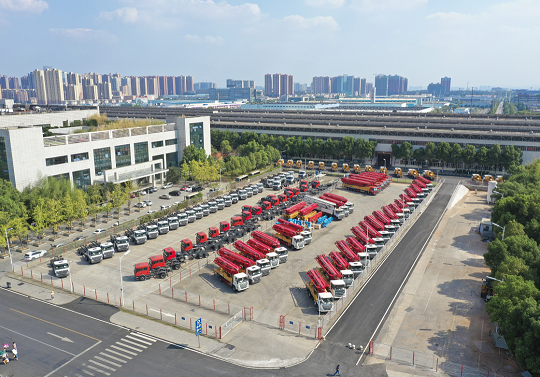 (長(zhǎng)沙經(jīng)開(kāi)區(qū)三一重工產(chǎn)業(yè)園,停車(chē)坪內(nèi)停放的混凝土泵車(chē)。湖南日?qǐng)?bào)全媒體記者 辜鵬博 攝)