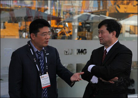開(kāi)展當(dāng)天,中國(guó)工程機(jī)械工業(yè)協(xié)會(huì)副會(huì)長(zhǎng)兼秘書(shū)長(zhǎng)蘇子孟蒞臨徐工集團(tuán)展位,參觀了徐工集團(tuán)展出的全系列工程機(jī)械產(chǎn)品。參觀期間,蘇子孟秘書(shū)長(zhǎng)與徐工機(jī)械副總裁、進(jìn)出口公司董事長(zhǎng)王巖松,就中國(guó)企業(yè)海外市場(chǎng)拓展、中國(guó)工程機(jī)械行業(yè)未來(lái)發(fā)展方向等問(wèn)題進(jìn)行了深入交流。