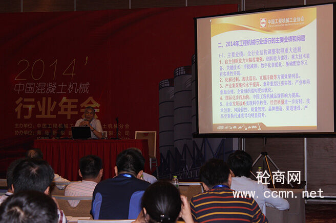 2014年工程協(xié)會混凝土機(jī)械分會年會在山東省青島市召開,來自行業(yè)協(xié)會、各大混凝土機(jī)械主機(jī)廠、配套件企業(yè)、大專院校和行業(yè)媒體等各界人士出席會議,中國工程機(jī)械工業(yè)協(xié)會會長祁俊主持會議。