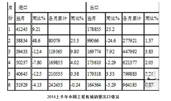 2014年上半年工程機械進出口情況