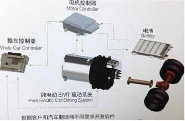 動力總成采用電驅(qū)動機械式自動變速器,采用四檔自動變速傳動,無離合器,無機械式同步器,利用電驅(qū)動主動同步代替?zhèn)鹘y(tǒng)的同步器摩擦被動同步,純EMT相比傳統(tǒng)自動變速器AMT具有高效率和低成本優(yōu)勢。