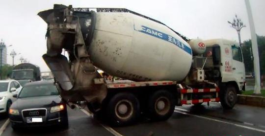 由于連日來的大雨,23日下午13時50分許,福建晉江市晉光路燈控路口,一輛攪拌車剎車打滑,車頭沖上綠化帶撞了電子警察監(jiān)控桿,之后車身打橫,車尾擦撞了一旁停車等紅燈的奧迪小車,兩人當(dāng)街發(fā)生爭執(zhí)。