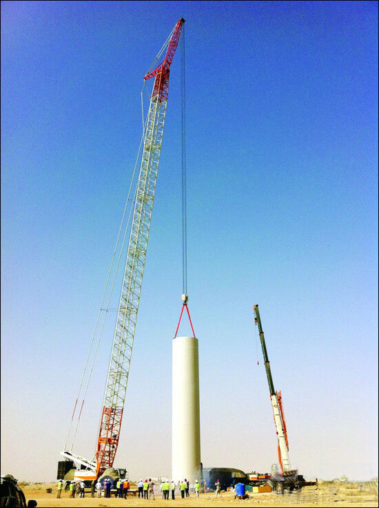 該風電項目地點位于巴基斯坦卡拉奇信德省的東北部,距卡拉奇市約150公里,風電項目總裝機規(guī)模30MW,項目將裝設12臺2.5MW風機,每臺風電機配套提供一臺箱式變電站,此大型工程普通起重機根本無法勝任,而作為中聯(lián)重科履帶吊的明星產品,QUY500以組裝便捷性、起重性能、吊裝效率等方面的優(yōu)勢征服了巴基斯坦客戶以及施工單位團隊。此次QUY500進行的風電場首吊采用的是固定副臂風電工況(主臂84米+固定副臂12米)、起吊幅度20m、額定起重量為110t、起吊高度100m、機艙重量84t、負載率為83.6%。在巴基斯坦卡拉奇的成功首吊,再一次驗證了中聯(lián)QUY500“風電之王”的美譽。