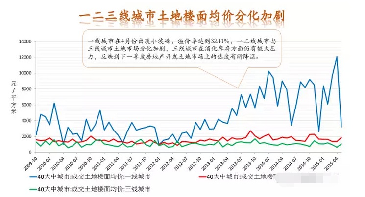 從不同級別的城市看,一線城市環(huán)比3月上漲幅度達(dá)到14.1%,漲幅最大,二線城市漲幅也達(dá)到7.3%。而三四線城市則并不樂觀,整體市場走勢出現(xiàn)了明顯的分化趨勢。