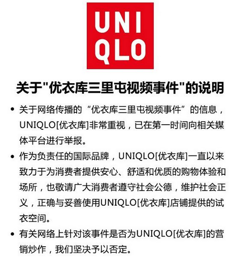 簡(jiǎn)單來說就是一男一女在北京三里屯的優(yōu)衣庫試衣間里那什么了,