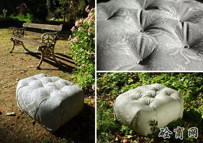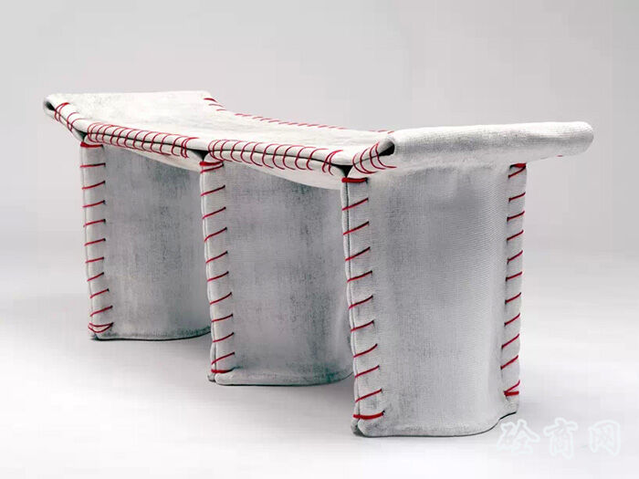 德國設計師florian schmid設計了一種“縫合混凝土”座椅,這個設計受到了混凝土帆布(CC)材料的影響。混凝土布料是一種浸漬了布料的柔軟水泥,它在水合過程中變硬,最終形成一個輕薄的,防水防火的混凝土表皮,將柔軟溫暖的布料質感和堅硬冰冷的水泥融為一體。