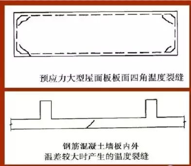 多在大體積混凝土或高強(qiáng)混凝土施工過(guò)程中產(chǎn)生:由于混凝土水化熱很高,混凝土內(nèi)部溫度與表面溫度以及外部環(huán)境溫度相差較大,加之有約束的存在,進(jìn)而產(chǎn)生水化熱裂縫。
