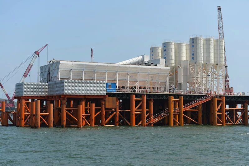 目前,方圓集團HZS180D型水上平臺混凝土攪拌站在方圓集團成套設(shè)備有限公司售后服務(wù)工程師夜以繼日的緊張安裝、調(diào)試下,已經(jīng)投入施工。 該設(shè)備生產(chǎn)混凝土主要用于澆灌91個橋墩,每個橋墩都必須一次性澆筑完成,大約使用69.02萬立方混凝土。施工中,不僅作業(yè)環(huán)境惡劣,而且工程巨大、工期緊、施工難度大、有效作業(yè)時間短,面對惡劣的氣候、艱苦的環(huán)境,方圓集團工作人員干勁十足,克服一切不利因素,迎難而上,忘我奉獻,將各項任務(wù)有條不紊地順利推進。