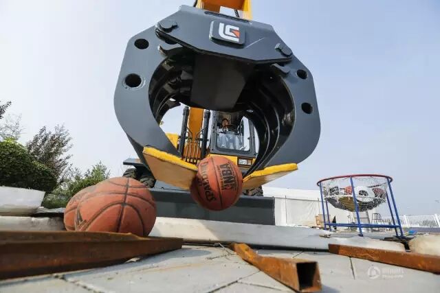 丁旭打開車門,坐進挖掘機艙內(nèi),將地上的籃球一個個用吊臂抓取,進行遠(yuǎn)距離投籃。為了方便直視籃筐,她將眼前的玻璃窗也卸掉了。她每天都會像這樣頂著烈日在戶外練習(xí)一整天。