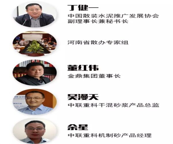 此次方案的參與實施者對有中國散裝水泥推廣發(fā)展協(xié)會副理事長兼秘書長丁健一;河南省散辦專家組;金鼎集團(tuán)董事長董紅偉;中聯(lián)重科干混砂漿產(chǎn)品總監(jiān)吳漫天;中聯(lián)重科機(jī)制砂產(chǎn)品經(jīng)理余星
