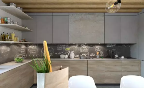進(jìn)門后左手邊淺淺的水泥矮墻和谷倉(cāng)門劃界出玄關(guān)走道,從大門延伸繞了客廳一圈的水泥地板最后終止在斜對(duì)角的書架下方,這么做的用意是讓腳踏車可以牽進(jìn)家中,門口區(qū)域則可直接擺放鞋子;而谷倉(cāng)門設(shè)計(jì)最棒的地方是,出外采買回來(lái)后,穿越小門就能抵達(dá)廚房卸下物品,此外,流理臺(tái)上方加裝磁磚質(zhì)感的玻璃,方便清理又有造型。