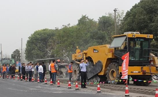 參會嘉賓、客戶參觀了臨邑316省道改造工程橋林段徐工XM200K銑刨機(jī)、徐工XLZ230K、XLZ2103路面冷再生機(jī)的施工現(xiàn)場實戰(zhàn)演示。一到現(xiàn)場,一組嘉賓們嘉賓興致勃勃的圍住了正在作業(yè)該項目最后幾公里的XM200K銑刨機(jī),只見XM200K銑刨機(jī)行走平穩(wěn),身手矯健,銑出的填料坑邊側(cè)及底部整齊、深度均勻,齒狀幾何表面筆直平整,從事多年養(yǎng)護(hù)施工的嘉賓們發(fā)出了“漬漬”的稱贊聲;另一組嘉賓則在XLZ230K、XLZ2103路面冷再生機(jī)的施工段過飽了眼福,只見XLZ230K路面冷再生機(jī)力大無窮、功能全面,銑刨、破碎、加料、灑水、拌合、攤鋪和預(yù)壓一次完成,現(xiàn)場測量結(jié)果顯示銑刨深度大于450mm,超出客戶的預(yù)期,徐工XLZ230K路面冷再生機(jī)獲得了在場用戶的一致好評。