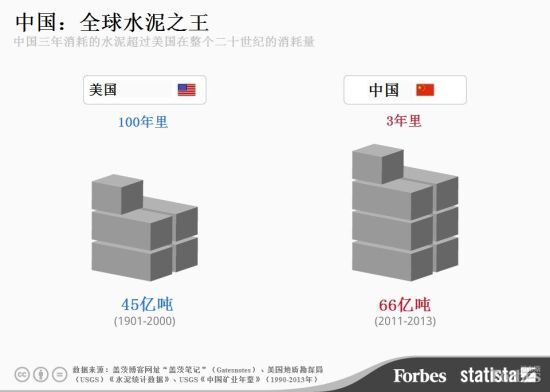 比爾·蓋茨做了一個令人震撼的對比,讓大家對中國在二十一世紀(jì)對水泥的狼吞虎咽有一個直觀認(rèn)識。比爾·蓋茨在個人博客上表示,2011年至2013年期間,中國消耗了66億噸水泥,超過美國在整個二十世紀(jì)的消耗量。但是看看美國在1901年至2000年期間建造了哪些工程:各種摩天大樓、州際公路、胡佛水壩等等,而期間消耗的水泥總共只有45億噸。不過,蓋茨沒有能夠呈現(xiàn)中美兩國地理環(huán)境、建筑習(xí)慣的差異,因而有些大驚小怪。