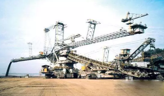 排土能力達(dá)到34000噸/小時(shí),臂長(zhǎng)超過(guò)120米。皮帶排土機(jī)為移動(dòng)式連續(xù)工作的排料設(shè)備,它們將來(lái)自可移動(dòng)梯段皮帶運(yùn)輸機(jī)的物料排卸在料堆上,借助皮帶轉(zhuǎn)載車(chē)和皮帶滑行轉(zhuǎn)載車(chē)將物料輸送到排土機(jī)。排土機(jī)有能力堆高低地、作為行駛路面的平盤(pán),以便隨后用做新采區(qū)的卸料、堆高。除此之外,還可以使用一部皮帶排土機(jī)為可移動(dòng)梯段皮帶運(yùn)輸機(jī)堆起一個(gè)高平面。說(shuō)白了,它就是一個(gè)堆土的設(shè)備嘍~